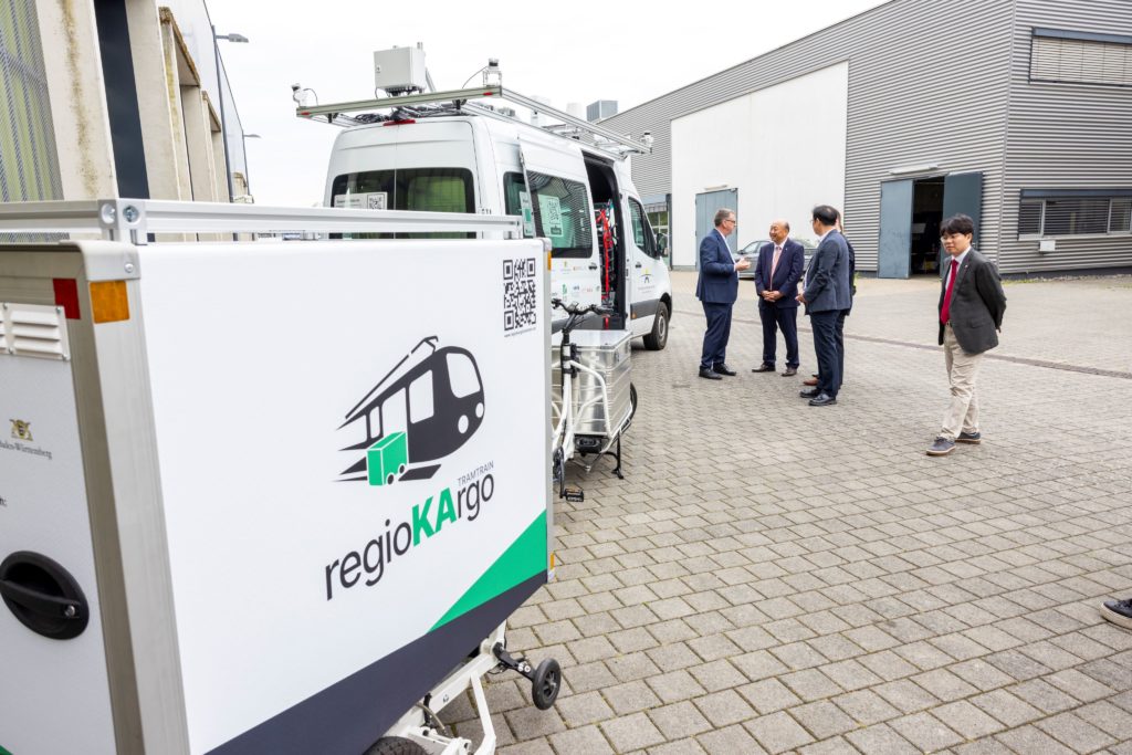 La visite du Campus Est du KIT a mis en lumière plusieurs projets de recherche innovants, parmi lesquels le projet regioKArgoTramTrain. Ce projet pilote démontre comment l’infrastructure existante des trams et trains urbains peut être utilisée pour le transport combiné de passagers et de marchandises. L’intégration dans le trafic urbain contribue à rendre la logistique en ville plus durable, plus efficace et moins émettrice de CO₂. Un nouveau prototype de remorque électrique pour vélo a également été présenté, illustrant des solutions flexibles et écologiques pour la mobilité urbaine.